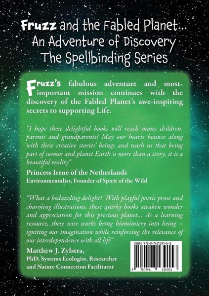 In this second book in the series, donning a detective's cap, Fruzz sets out to unravel the mystery and uncover the secrets that makes the Fabled planet so distinctive. Fruzz is blown away by the discovery of all the features the Fabled planet has that ensures that Life can thrive. Realising the planet is like a spectacular giant spaceship travelling throughout the Universe accompanied by very special travelling partners, Fruzz further discovers that she's a most uniquely designed craft that provides the most perfect home.