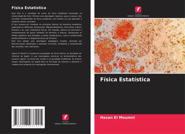 Este livro é o resultado do curso de física estatística leccionado na Universidade Ibn Zohr. Oferece uma abordagem rigorosa, passo a passo, dos conceitos fundamentais da física estatística, com ênfase na sua aplicação a sistemas físicos concretos.O livro começa por introduzir os princípios básicos da mecânica estatística, explicando as diferentes distribuições (Maxwell-Boltzmann, Fermi-Dirac e Bose-Einstein) e as suas implicações físicas. Em seguida, explora em pormenor o comportamento de gases perfeitos de férmions e bósons, destacando os efeitos quânticos que emergem a baixas temperaturas, como a condensação de Bose-Einstein e a degenerescência de férmions.Este livro adopta uma abordagem pedagógica simples, ilustrada por demonstrações detalhadas e exemplos concretos, facilitando a compreensão dos conceitos mais abstractos.
