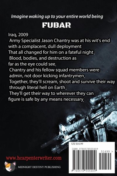 From the Preface:"As I mounted the m249 machine gun against my shoulder, I felt the weight of the entire weapon. I had never really had the opportunity to fire one of these bad boys before, but by god, there was a first for everything. I flipped the safety selector switch, removing the weapon from safe. I closed my eyes for a brief moment, knowing time was of the essence. I reopened them, steadied my breathing as I squeezed softly on the trigger. I fired small round bursts into the crowd of these things. I barely knew how to work one of these because my military career thus far has been magazine-fed weapons. I prayed to whoever was listening for the belt to remain free with no snag. I continued to three to five-round burst my way to the base exchange. The good news: these things were going down with regular ammo. The bad news: I don't know if I have enough ammo for all of them." Imagine waking up to your entire world being FUBAR...Iraq, 2009. Army Specialist Jason Chantry was at his wit's end with a complacent, dull deployment. That all changed for him on a fateful night. Blood, bodies, and destruction as far as the eye could see. Chantry and his fellow squad members were admin, not door kicking infantrymen! Together, they'll scream, shoot, and, did we mention scream? They'll get their way to wherever they can figure is safe by any means necessary.