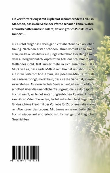 Ein verstörter Hengst mit kupferrot schimmerndem Fell. Ein Mädchen, das in die Seele der Pferde schauen kann. Wahre Freundschaften und ein Talent, das ein großes Publikum verzaubert ... Für Fuchsl fängt das Leben gar nicht abenteuerlich an, eher traurig. Nach den ersten schönen Jahren kommt er zu einer Frau, die kein Gefühl für ein junges Pferd hat. Der Hengst mit dem außergewöhnlich kupferroten Fell, das schimmert wie fließendes Gold, fällt immer mehr in sich zusammen. Das Glück will es, dass Karla Mitleid mit ihm hat und ihn zu sich auf ihren Reiterhof holt. Emma, die jede freie Minute im Stall bei Karla verbringt, merkt bald, dass sie die Gabe hat, Pferde zu verstehen. Als sie in Fuchsls Seele schaut, ist sie zutiefst erschüttert über die unendliche Traurigkeit, die sie dort spürt. Fuchsl weint, er leidet unter unglaublichen Qualen. Emma kann ihren Vater überreden, Fuchsl zu kaufen. Jetzt beginnen für das schöne Pferd mit der Vorliebe für Zitroneneis die wahren Abenteuer des Lebens. Mit Emma an seiner Seite blüht Fuchsl wieder auf und erlebt mit ihr lustige und tragische Geschichten.