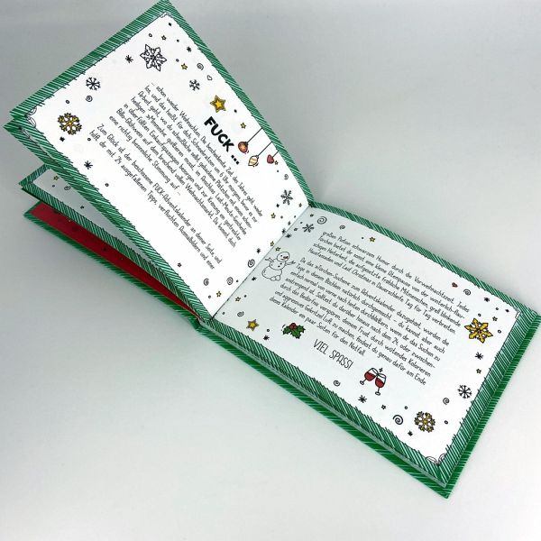 Schon wieder Weihnachten? Fuck. Jedes Jahr das Gleiche: Man überlegt ewig, was man schenken soll, kauft dann auf den letzten Drücker irgendeinen Scheiß, tritt sich mit Tausenden anderen auf dem Weihnachtsmarkt halbtot um ekligen Glühwein zu saufen, und außerdem ist es sowieso viel zu warm für Dezember. Vom nervigen Familienessen mal ganz zu schweigen ... Der einzige Lichtblick ist dieser Adventskalender - endlich mal gepflegt abkotzen, während alle anderen auf besinnlich machen.