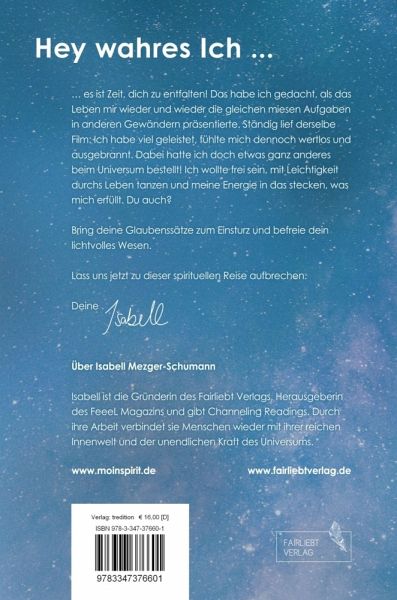 Hey wahres Ich, es ist Zeit, dich zu entfalten! Das habe ich gedacht, als das Leben mir wieder und wieder die gleichen miesen Aufgaben in anderen Gewändern präsentierte. Ständig lief derselbe Film: Ich habe viel geleistet, fühlte mich dennoch wertlos und ausgebrannt. Dabei hatte ich doch etwas ganz anderes beim Universum bestellt! Ich wollte frei sein, mit Leichtigkeit durchs Leben tanzen und meine Energie in das stecken, was mich erfüllt. Du auch? Bring deine Glaubenssätze zum Einsturz und befreie dein lichtvolles Wesen.Lass uns jetzt zu dieser spirituellen Reise aufbrechen.