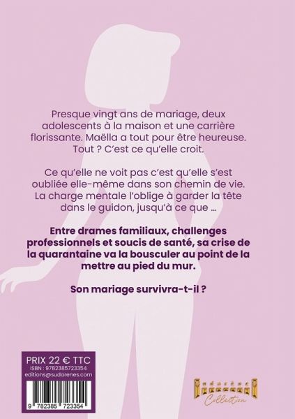 Presque vingt ans de mariage, deux adolescents à la maison et une carrière florissante. Maëlla a tout pour être heureuse. Tout ? C'est ce qu'elle croit. Ce qu'elle ne voit pas c'est qu'elle s'est oubliée elle-même dans son chemin de vie, la charge mentale l'oblige à garder la tête dans le guidon, jusqu'à ce que ... Entre drames familiaux, challenges professionnels et soucis de santé, sa crise de la quarantaine va la bousculer au point de la mettre au pied du mur. Son mariage survivra-t-il ? EXTRAIT "C'est une idée qui a commencé à me trotter dans la tête avant la proposition de mon boss... mais pourquoi pas après tout ? Quand je pense aux centaines d'heures écoulées, au salaire de misère pour lequel je travaille, qui sera certes augmenté, mais pas assez selon moi, et aux avantages que le poste d'associée me donnerait, mais qui ne me suffisent pas. Il est peut-être effectivement temps finalement." À PROPOS DE L'AUTRICE Laura Wolhelm - Laura est l'auteure de la trilogie de romance fantastique "Azmel" publiée chez Sudarènes Éditions. Également auteure de la saga drame contemporain "Souvenirs Introuvables" publiée en autoédition, elle termine actuellement les corrections de son nouveau roman feel good "Fucking quarantaine!" qui sera publié courant 2024 chez Sudarènes Éditions. Le premier tome d'"Azmel" a été écrit pour sa petite sur (Laura avait tout juste 19 ans) et n'était, au départ, pas du tout destiné à être publié. Mais ce livre a tellement été apprécié que son entourage l'a poussé à la publication. Cette concrétisation de son rêve d'enfant est vécue comme une incroyable aventure humaine. Aujourd'hui, Laura est maman d'une petite fille et travaille dans le commerce. Un emploi du temps plus que chargé mais où elle trouve tout de même le temps pour ses deux passions: la lecture et l'écriture. Début 2022, la fille de Laura a souhaité l'accompagner en séances de dédicaces et a eu l'idée d'écrire son propre livre. Un projet que Laura a tout de suite soutenu. Ce livre, "Kelly a perdu sa susu" est l'aboutissement d'un vrai travail d'équipe entre sa fille, Licia mais aussi Pauline, leur illustratrice et Scarlett, sa webdesigner. Son expérience d'auteure lui a appris de nombreuses choses et c'est pourquoi, après plus de quatre ans de coaching littéraire privé, Laura à mis en ligne diverses astuces & conseils d'auteur pour tout ceux qui veulent se lancer dans le grand bain. Très proche de ses lecteurs, elle a créé un compte Intagram pour pouvoir échanger avec eux : @laurawilhelm_auteure. Si vous le souhaitez, n'hésitez pas à lui rendre visi