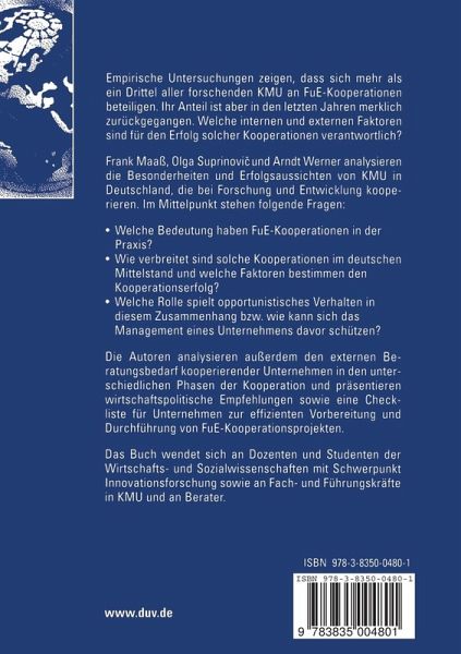 Frank Maaß, Olga Suprinovi? und Arndt Werner analysieren die Besonderheiten und Erfolgsaussichten von KMU in Deutschland, die bei Forschung und Entwicklung kooperieren. Im Mittelpunkt stehen folgende Fragen: