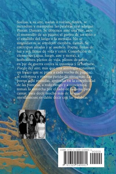Vanessa Torres, Rossy Evelin Lima, Erika Said y Miriam D. Maldonado elevan un canto a cuatro voces para conjurar los elementos Agua, Tierra, Agua y Fuego. Poesía descarnada, llena de ternura y riqueza crómatica; un canto al amor y a la solidaridad. Cada una, desde su registro bien particular, eleva su voz y abre las ventanas a un mundo de posibilidades. Un libro fácil de leer y muy difícil de olvidar: Fuego del aire.