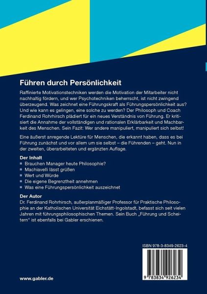 Dr. Ferdinand Rohrhirsch ist außerplanmäßiger Professor für Praktische Philosophie an der Katholischen Universität Eichstätt-Ingolstadt. Seit vielen Jahre beschäftigt er sich mit führungsphilosophischen Themen. Rohrhirsch ist gefragt als Coach und Referent. Sein Buch "Führung und Scheitern" ist ebenfalls bei Gabler erschienen.