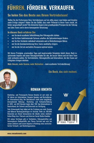 Das unverzichtbare Praxisbuch für Vertriebsführungskräfte, die wirklich etwas bewegen wollenIn der Welt des Vertriebs reicht es nicht, nur Zahlen zu analysieren und Verkaufsziele vorzugeben. Wer heute als Führungskraft im Vertrieb nachhaltig erfolgreich sein will, muss mehr leisten: inspirieren, entwickeln, stärken - und vor allem den eigenen Führungsstil radikal hinterfragen. Genau hier setzt dieses Buch an.Roman Kmenta, langjähriger Vertriebsprofi, Unternehmer und gefragter Unternehmensberater, teilt in diesem kompakten, praxisorientierten Buch seine 21 + 1 Prinzipien, die den Unterschied machen - zwischen einem durchschnittlichen Vertriebsteam und einer leistungsstarken Verkaufsmannschaft mit echtem Biss. Sie erhalten ein kompaktes, klares und radikal praxisnahes Führungskonzept für alle, die Verantwortung für Vertriebserfolg tragen.Was erwartet Sie? Klare Prinzipien statt oberflächlicher Tipps Führung auf Augenhöhe - mit Konsequenz, Haltung und Herz Strategien für mehr Eigenverantwortung, Motivation und Profit im Team Impulse für profitables Wachstum - nicht nur in Umsatz, sondern vor allem im Gewinn Praxistaugliche Denkweisen für Recruiting, Coaching und systematische VertriebsentwicklungAus der Praxis für die PraxisAutor, Unternehmensberater und Keynote Speaker Roman Kmenta begeistert auf internationalen Foren Teilnehmer von weltbekannten Firmen wie Würth, Mediengruppe RTL oder Eternit mit seinen Vorträgen und unterstützt als Business Coach Selbstständige dabei, ihr Business zu einem echten Unternehmen zu entwickeln. Seine Inhalte helfen monatlich mehr als 100.000 Menschen geschäftlich noch erfolgreicher zu sein.Er unterstützt Unternehmen mit Vertriebsteams regelmäßig dabei, Ihre Umsätze und Erträge zu entwickeln. In diesem Buch bringt er seine gesammelten Praxiserfahrungen im Verkauf sowie seine Kenntnisse als Business Coach mit ein, um Führungskräfte dabei zu unterstützen, eine ihrer wichtigsten Fähigkeiten - das Team zur Spitzenleistung zu führen - auf ein neues Level zu heben.Dieses Buch ist für Sie, wenn Sie ...ein Team oder eine Vertriebsorganisation leiten - vom kleinen Verkaufsteam bis zur internationalen Sales-Unit,genug haben von ineffizienten Meetings, Motivationslöchern und Preisdiskussionen,nicht selbst der beste Verkäufer sein wollen, sondern der beste Leader für Ihr Team.Ob neu in der Führungsrolle oder bereits erfahren - "Führen. Fördern. Verkaufen." liefert nicht nur Aha-Erlebnisse, sondern echte Hebel für mehr Performance, Motivation und unternehmerischen Erfolg.Ein Buch, das aufrüttelt, Klartext spricht und inspiriert. Es bietet einen ehrlichen, branchenübergreifenden Blick auf das, was erfolgreiche Vertriebsführung heute wirklich ausmacht.Jetzt lesen und das Fundament für ein effizient geführtes und umsatzstarkes Vertriebsteam legen!
