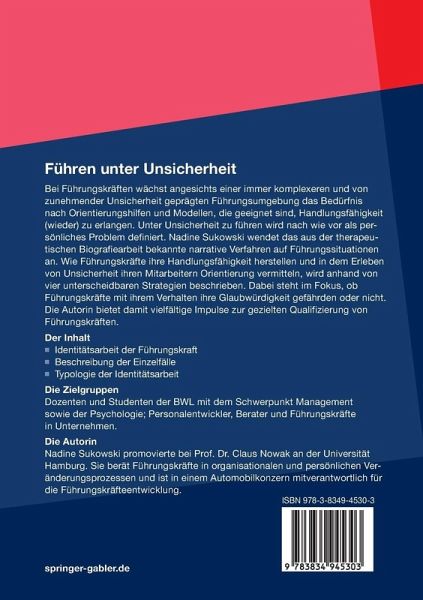 Bei Führungskräften wächst angesichts einer immer komplexeren und von zunehmender Unsicherheit geprägten Führungsumgebung das Bedürfnis nach Orientierungshilfen und Modellen, die geeignet sind, Handlungsfähigkeit (wieder) zu erlangen. Unter Unsicherheit zu führen wird nach wie vor als persönliches Problem definiert. Nadine Sukowski wendet das aus der therapeutischen Biografiearbeit bekannte narrative Verfahren auf Führungssituationen an. Wie Führungskräfte ihre Handlungsfähigkeit herstellen und in dem Erleben von Unsicherheit ihren Mitarbeitern Orientierung vermitteln, wird anhand von vier unterscheidbaren Strategien beschrieben. Dabei steht im Fokus, ob Führungskräfte mit ihrem Verhalten ihre Glaubwürdigkeit gefährden oder nicht. Die Autorin bietet damit vielfältige Impulse zur gezielten Qualifizierung von Führungskräften.