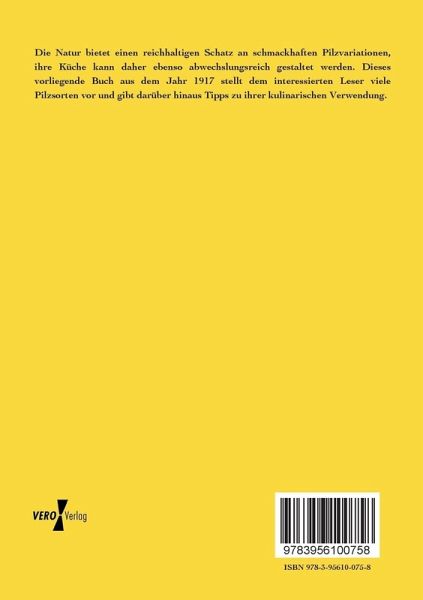 Die Natur bietet einen reichhaltigen Schatz an schmackhaften Pilzvariationen, ihre Küche kann daher ebenso abwechslungsreich gestaltet werden. Dieses vorliegende Buch aus dem Jahr 1917 stellt dem interessierten Leser viele Pilzsorten vor und gibt darüber hinaus Tipps zu ihrer kulinarischen Verwendung.