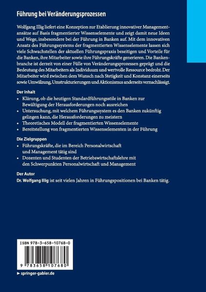 Wolfgang Illig liefert eine Konzeption zur Etablierung innovativer Managementansätze auf Basis fragmentierter Wissenselemente und zeigt damit neue Ideen und Wege, insbesondere bei der Führung in Banken auf. Mit dem innovativen Ansatz des Führungssystems der fragmentierten Wissenselemente lassen sich viele Schwachstellen der aktuellen Führungspraxis beseitigen und Vorteile für die Banken, ihre Mitarbeiter sowie ihre Führungskräfte generieren. Die Bankenbranche ist derzeit von einer Fülle von Veränderungsprozessen geprägt und die Bedeutung des Mitarbeiters als Individuum und wertvolle Ressource bedroht. Der Mitarbeiter wird zwischen dem Wunsch nach Stetigkeit und Konstanz einerseits sowie Umwälzung, Umstrukturierungen und Aktionismus anderseits vernachlässigt.