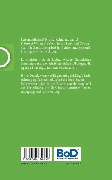 Personalführung? Nichts leichter als das ...!Führung? Was ist das denn? ist ein Lese- und Übungsbuch für Zusammenarbeit im Betrieb und Personalführung bzw. -entwicklung. Es erleichtert durch kleine, witzige Geschichten kombiniert mit abwechslungsreichen Übungen, die eigenen Führungsqualitäten zu entdecken. Heike Dresel, Master of Engineering (M.Eng.), Fachrichtung Biofasertechnik, lebt bei Baden-Baden.Sie engagiert sich in der Erwachsenenbildung und Fortbildungen der IHK-Industriemeister.