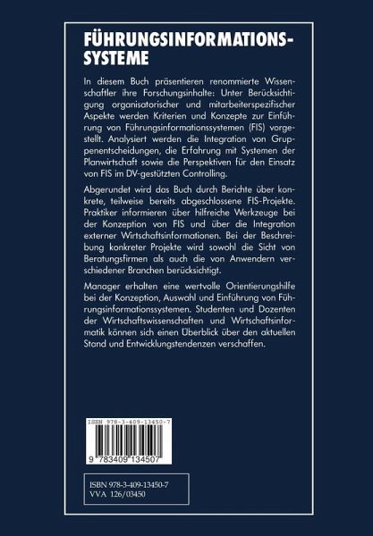 Theoretische Grundlagen.- Führungsinformationssysteme: Geschichtliche Entwicklung, Aufgaben und Leistungsmerkmale.- Der Auswahlprozeß von Werkzeugen zum Aufbau von Führungsinformationssystemen.- Einsatzkriterien, kritische Erfolgsfaktoren und Einführungsstrategien für Führungsinformationssysteme.- Führungsinformationssysteme (FIS): Einführungskonzepte und Entwicklungspotentiale.- Computer Aided Team Werkzeuge als Bestandteile von Führungsinformationssystemen.- Erfahrungen mit Führungsinformationssystemen in Betrieben der Planwirtschaft.- Perspektiven für die DV-Unterstützung des Controlling mit Hilfe von Führungsinformationssystemen.- Anwendererfahrungen.- Entwicklung und Einführung eines Konzernsteuerungssystems bei der Westdeutschen Landesbank (WestLB).- Management-Informations-Systeme - Konzeption und Einführung in einer Großsparkasse.- Erfahrungen mit einem FIS bei der Deutschen Lufthansa.- Die Einführung entscheidungsorientierter Führungsinformationssysteme am Beispiel einer Kunden- und Sortimentsanalyse für die Hoechst AG.- Integrationskonzepte externer Wirtschaftsinformationen für Führungsinformationssysteme.- Executive Information im internationalen Konzern.- Das Projekt "Einführung Neues Berichtswesen" im Sinne eines Führungsinformationssystems (FIS) in ein internationales Unternehmen.- FIS bei der Merbag-Gruppe: Strategien, Gesamtintegration und Konzeption.- Borderless Business - Führungsinformations- Management im globalen Konzern.