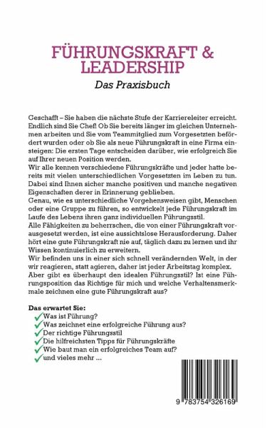 Geschafft - Sie haben die nächste Stufe der Karriereleiter erreicht. Endlich sind Sie Chef! Ob Sie bereits länger im gleichen Unternehmen arbeiten und Sie vom Teammitglied zum Vorgesetzten befördert wurden oder ob Sie als neue Führungskraft in eine Firma einsteigen: Die ersten Tage entscheiden darüber, wie erfolgreich Sie auf Ihrer neuen Position werden.Wir alle kennen verschiedene Führungskräfte und jeder hatte bereits mit vielen unterschiedlichen Vorgesetzten im Leben zu tun. Dabei sind Ihnen sicher manche positiven und manche negativen Eigenschaften derer in Erinnerung geblieben.Genau, wie es unterschiedliche Vorgehensweisen gibt, Menschen oder eine Gruppe zu führen, so entwickelt jede Führungskraft im Laufe des Lebens ihren ganz individuellen Führungsstil. Alle Fähigkeiten zu beherrschen, die von einer Führungskraft vorausgesetzt werden, ist eine aussichtslose Herausforderung. Daher hört eine gute Führungskraft nie auf, täglich dazu zu lernen und ihr Wissen kontinuierlich zu erweitern.Wir befinden uns in einer sich schnell verändernden Welt, in der wir reagieren, statt agieren, daher ist jeder Arbeitstag komplex.Aber gibt es überhaupt den idealen Führungsstil? Ist eine Führungsposition das Richtige für mich und welche Verhaltensmerkmale zeichnen eine gute Führungskraft aus? Das erwartet Sie:-Was ist Führung?-Was zeichnet eine erfolgreiche Führung aus?-Der richtige Führungsstil-Die hilfreichsten Tipps für Führungskräfte-Wie baut man ein erfolgreiches Team auf?-und vieles mehr ...