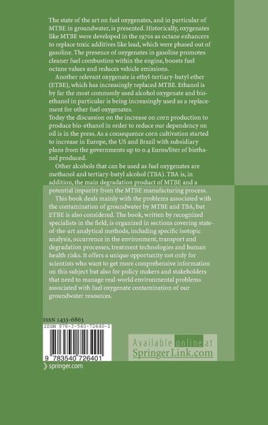 "Written by recognised specialists in the field, this book will be of interest to a broad audience of analytical chemists, environmental scientists, toxicologists and technologists working in the field of the water cycle, but also to policy makers and stakeholders that need to manage real-world environmental problems associated with fuel oxygenates contaminating groundwater resources. Overall, the present book is certainly timely since the interest in fuel oxygenates in the environment has grown considerably during the last few years." (International Journal of Environmental Analytical Chemistry, Vol. 88 (9), August, 2008)