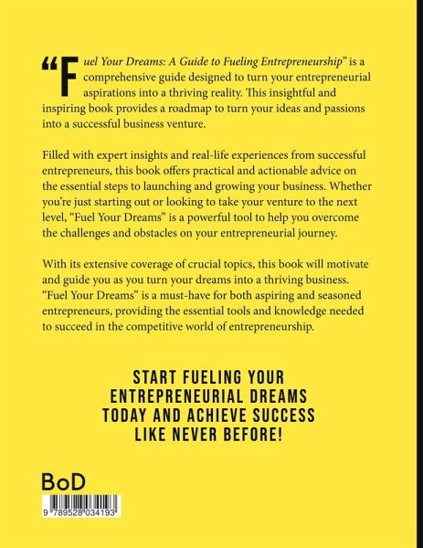 "Fuel Your Dreams: A Guide to Fueling Entrepreneurship" is a comprehensive guide designed to turn your entrepreneurial aspirations into a thriving reality. This insightful and inspiring book provides a roadmap to turn your ideas and passions into a successful business venture.Filled with expert insights and real-life experiences from successful entrepreneurs, this book offers practical and actionable advice on the essential steps to launching and growing your business. Whether you're just starting out or looking to take your venture to the next level, "Fuel Your Dreams" is a powerful tool to help you overcome the challenges and obstacles on your entrepreneurial journey.With its extensive coverage of crucial topics, this book will motivate and guide you as you turn your dreams into a thriving business. "Fuel Your Dreams" is a must-have for both aspiring and seasoned entrepreneurs, providing the essential tools and knowledge needed to succeed in the competitive world of entrepreneurship. Start fueling your entrepreneurial dreams today and achieve success like never before!