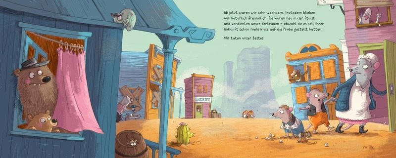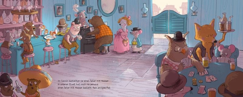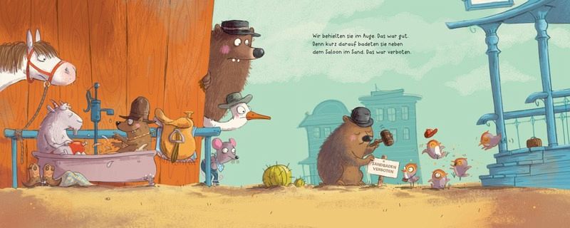 In der kleinen Stadt Dusty Hill geht es geordnet zu - bis fünf fremde Vögel auftauchen und alles durcheinanderbringen. Sie trinken Wasser aus flachen Tellern, baden im Sand und spannen ein Seil quer durch die Stadt. Sehr verdächtig!