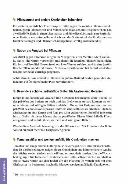 Denn mit Natron, Soda, Essig, Zitronensäure und Kernseife lassen sich fast alle Drogerieprodukte ersetzen und viele Herausforderungen des Alltags lösen. Über 300 Anwendungen und 33 Rezepte zeigen, wie einfach es geht. Lass dich inspirieren von den Rezepten für nachhaltige, gesunde Alternativen zu zahlreichen Drogerieprodukten und mach auch dein Leben ein bisschen grüner!