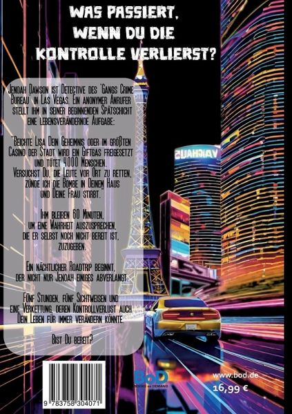 Jenoah Dawson ist Detective des 'Gangs Crime Bureau' in Las Vegas. Ein anonymer Anrufer stellt ihm in seiner beginnenden Spätschicht eine lebensverändernde Aufgabe: "Beichte Lisa Dein Geheimnis oder im größten Casino der Stadt wird ein Giftgas freigesetzt und tötet 4000 Menschen. Versuchst Du, die Leute vor Ort zu retten, zünde ich die Bombe in Deinem Haus und Deine Frau stirbt."Ihm bleiben 60 Minuten, um eine Wahrheit auszusprechen,die er selbst noch nicht bereit ist, zuzugeben.Ein nächtlicher Roadtrip beginnt, der nicht nur Jenoah einiges abverlangt.Fünf Stunden, fünf Sichtweisen und eine Verkettung, deren Kontrollverlust auch Dein Leben für immer verändern könnte. Bist Du bereit?