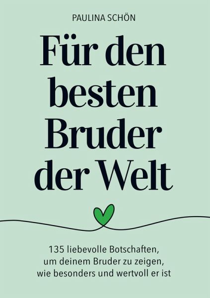 Für den besten Bruder der Welt - Ein Geschenkbuch, das das Herz berührt!Mit 135 herzergreifenden Botschaften ist es mehr als nur ein Buch: Es ist ein Schatz aus Erinnerungen, Weisheiten und Worten, die eure besondere Bindung feiern. Die Botschaften erzählen von gemeinsamen Träumen, unzerbrechlicher Verbundenheit und all den kleinen und großen Momenten, die das Leben schöner machen, wenn man sie mit einem Bruder teilt.Warum dieses Buch das perfekte Geschenk ist:- Ein emotionaler Begleiter: Jede Seite berührt das Herz und erinnert deinen Bruder daran, wie wertvoll er ist.- Das ideale Geschenk für jeden Anlass: Ob Geburtstag, Weihnachten oder einfach so - dieses Geschenkbuch wird zu einem liebevollen Andenken.- Ein Buch, das verbindet: Die Botschaften wecken gemeinsame Erinnerungen, schaffen neue emotionale Momente und schenken eurer Verbindung noch mehr Tiefe.- Worte, die bleiben: Ein Buch, das er immer wieder zur Hand nehmen wird, wenn er Trost oder ein Lächeln braucht.Zeige deinem Bruder, wie unersetzlich er für dich ist - mit diesem emotionalen Geschenkbuch, das garantiert mitten ins Herz trifft. Denn ein Bruder wie er verdient Worte, die für immer bleiben.
