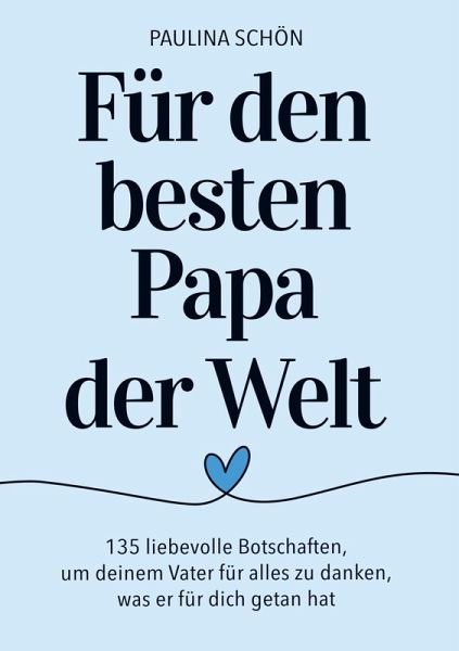 Ein Geschenk, das von Herzen kommt - für den besten Papa der Welt!Papas sind diejenigen, die immer da sind, wenn man sie braucht. Sie geben Halt, Sicherheit und Kraft, ohne viele Worte, aber mit umso mehr Taten. Doch wie oft nehmen wir uns die Zeit, um Danke zu sagen?Dieses liebevoll gestaltete Buch ist eine besondere Sammlung von Botschaften und Gedanken, die deinem Vater zeigen, wie wichtig er ist. Es ist ein Geschenk voller Wertschätzung und Dankbarkeit - für die kleinen und großen Dinge, die er Tag für Tag tut, oft ganz still und ohne Anerkennung zu erwarten.- Ein perfektes Geschenk für jeden Anlass: Ob zum Geburtstag, Vatertag oder einfach um zu zeigen, wie sehr du deinen Vater liebst.- Emotional und tiefgründig: Jede Botschaft in diesem Buch erinnert daran, wie wertvoll ein Vater für seine Familie ist.- Ein Schatz fürs Herz: Dieses Buch wird zu einer bleibenden Erinnerung, die dein Papa immer wieder gerne in die Hand nimmt.Zeige deinem Papa, wie viel er dir bedeutet, und schenke ihm Worte die von Herzen kommen. Weil er es verdient hat, jeden Tag daran erinnert zu werden, wie sehr er geliebt wird.Für alle Papas, die das Beste verdienen!