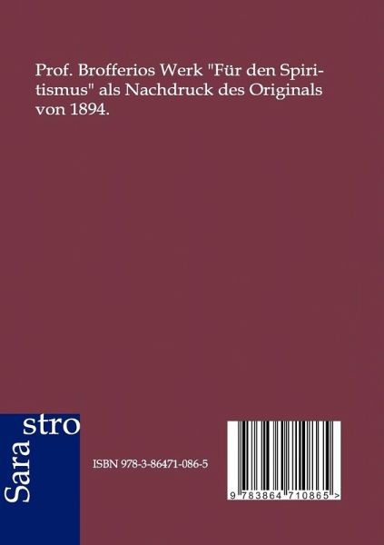 Prof. Brofferios Werk "Für den Spiritismus" als Nachdruck des Originals von 1894.