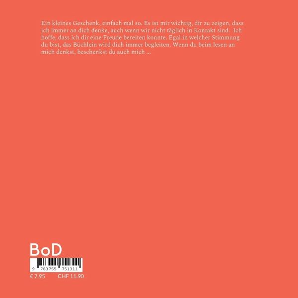 Kleine Geschenke erhalten die Freundschaft. Wie der Titel: "Für Dich" mit dem Untertitel: "Ein kleines Geschenk" schon aussagt, will man Freude schenken. Es ist wichtig, seinen Lieben, seinen Freunden, Verwandten, Geschäftspartnern zu zeigen, dass man an sie denkt, auch wenn man sich nicht jeden Tag sieht oder spricht.Dafür ist das Buch mit kleinem Preis gemacht, dass es Freude macht es zu verschenken.