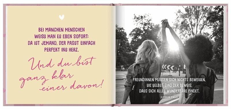 Das ausgestanzte Herz auf dem Cover sagt es schon ganz deutlich: Dieses kleine Geschenk ist für die eine, die mehr als nur eine Freundin ist - eben einfach die Beste! Innen zeigt das Geschenkbuch Für meine beste Freundin mit stimmungsvollen, modernen Fotos und liebevollen Texten, Sprüchen und Zitaten rund um besondere Freundschaften, wie schön es ist, eine beste Freundin zu haben und "best friends forever" zu sein. Ob als kleines Geburtstagsgeschenk für die beste Freundin, als kleines Mitbringsel, als Aufmerksamkeit oder als besonderes Dankeschön für zwischendurch: Für meine beste Freundin ist ein liebevolles kleines Geschenk, das garantiert ein Lächeln aufs Gesicht zaubert.