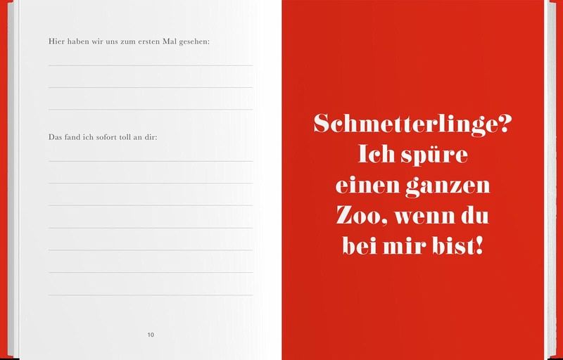 Ausgefüllt wird das Buch zu einer unverwechselbaren Liebeserklärung für den wichtigsten Menschen in deinem Leben und zu einem besonderen Geschenk zum Valentinstag, Jahrestag, Geburtstag, zur Hochzeit oder einfach zwischendurch.