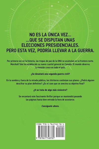 No es la única vez... ...que se disputan unas elecciones presidenciales. Pero esta vez, podría llevar a la guerra. Por primera vez en la historia, las tropas de paz de la ONU se acumulan en la frontera norte. Marshall Tate ha establecido su nuevo cuartel general en Canadá. El mundo observa. La tensión crece en todo el país. ¿Se desatará una segunda guerra civil? En la sombra y fuera de la mirada pública, los titiriteros continúan sus planes. ¿Podrá alguien descifrar su plan definitivo? ¿Es el caos que se avecina su objetivo final? ¿O se trata de algo más siniestro? Se encantará este fascinante…mehr