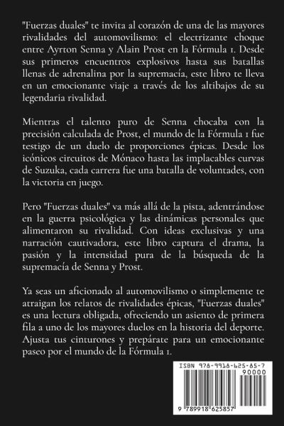 "Fuerzas duales" te invita al corazón de una de las mayores rivalidades del automovilismo: el electrizante choque entre Ayrton Senna y Alain Prost en la Fórmula 1. Desde sus primeros encuentros explosivos hasta sus batallas llenas de adrenalina por la supremacía, este libro te lleva en un emocionante viaje a través de los altibajos de su legendaria rivalidad. Mientras el talento puro de Senna chocaba con la precisión calculada de Prost, el mundo de la Fórmula 1 fue testigo de un duelo de proporciones épicas. Desde los icónicos circuitos de Mónaco hasta las implacables curvas de Suzuka, cada carrera fue una batalla de voluntades, con la victoria en juego. Pero "Fuerzas duales" va más allá de la pista, adentrándose en la guerra psicológica y las dinámicas personales que alimentaron su rivalidad. Con ideas exclusivas y una narración cautivadora, este libro captura el drama, la pasión y la intensidad pura de la búsqueda de la supremacía de Senna y Prost. Ya seas un aficionado al automovilismo o simplemente te atraigan los relatos de rivalidades épicas, "Fuerzas duales" es una lectura obligada, ofreciendo un asiento de primera fila a uno de los mayores duelos en la historia del deporte. Ajusta tus cinturones y prepárate para un emocionante paseo por el mundo de la Fórmula 1.