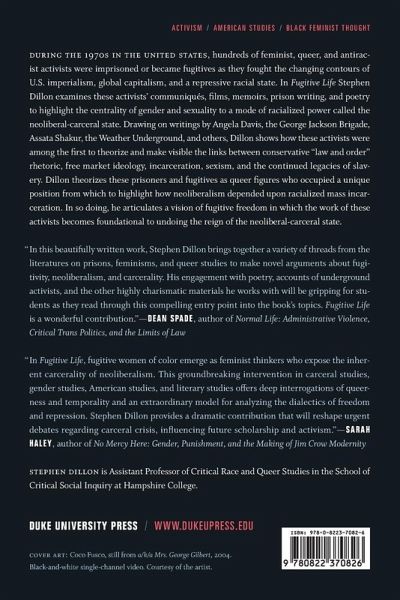 During the 1970s in the United States, hundreds of feminist, queer, and antiracist activists were imprisoned or became fugitives as they fought the changing contours of U.S. imperialism, global capitalism, and a repressive racial state. In Fugitive Life Stephen Dillon examines these activists' communiqués, films, memoirs, prison writing, and poetry to highlight the centrality of gender and sexuality to a mode of racialized power called the neoliberal-carceral state. Drawing on writings by Angela Davis, the George Jackson Brigade, Assata Shakur, the Weather Underground, and others, Dillon shows how these activists were among the first to theorize and make visible the links between conservative "law and order" rhetoric, free market ideology, incarceration, sexism, and the continued legacies of slavery. Dillon theorizes these prisoners and fugitives as queer figures who occupied a unique position from which to highlight how neoliberalism depended upon racialized mass incarceration. In so doing, he articulates a vision of fugitive freedom in which the work of these activists becomes foundational to undoing the reign of the neoliberal-carceral state.