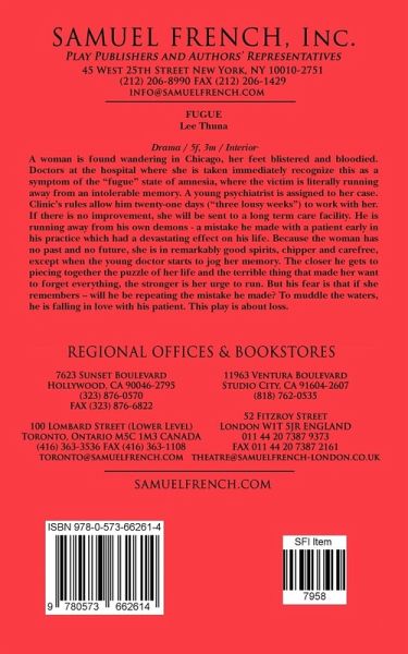 5f, 3m / Drama / Interior Set A woman is found wandering in Chicago, her feet blistered and bloodied. Doctors at the hospital where she is taken immediately recognize this as a symptom of the "fugue" state of amnesia, where the victim is literally running away from an intolerable memory. A young psychiatrist is assigned to her case. Clinic's rules allow him twenty-one days ("three lousy weeks") to work with her. If there is no improvement, she will be sent to a long term care facility. He is run