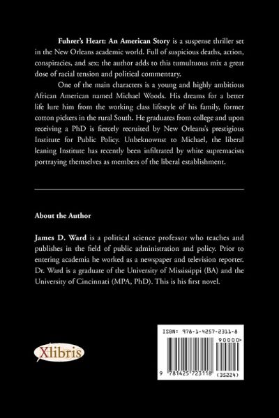"Fuhrer's Heart: An American Story" is a suspense thriller set in the New Orleans academic world and inspired by the David Duke era in Louisiana politics. Full of suspicious deaths, action, conspiracies, and sex; the author adds to this tumultuous mix a great dose of racial tension and political intrigue. One of the main characters is a young and highly ambitious African American named Michael Woods. His dreams for a better life lure him from the working class lifestyle of his family, former cotton pickers in the rural South. He graduates from college and upon receiving a PhD, is fiercely recruited by New Orleans' prestigious Institute for Public Policy. Unbeknown to Michael, the liberal leaning Institute has recently been infiltrated by white supremacists portraying themselves as members of the liberal establishment.
