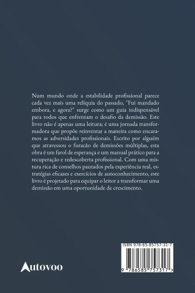Num mundo onde a estabilidade profissional parece cada vez mais uma relíquia do passado, "Fui mandado embora, e agora?" surge como um guia indispensável para todos que enfrentam o desafio da demissão. Este livro não é apenas uma leitura; é uma jornada transformadora que propõe reinventar a maneira como encaramos as adversidades profissionais. Escrito por alguém que atravessou o furacão de demissões múltiplas, esta obra é um farol de esperança e um manual prático para a recuperação e redescoberta profissional. Com uma mistura rica de conselhos pautados pela experiência real, estratégias eficazes e exercícios de autoconhecimento, este livro é projetado para equipar o leitor a transformar uma demissão em uma oportunidade de crescimento.