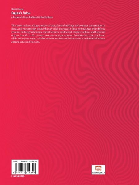Foreword.- Preface.- Chapter 1 The Tulou Study: a Historical Review.- Chapter 2 A Rich Variety of Tulou Forms.- Chapter 3 Fujian Tulou: a Definition.- Chapter 4 The Communal Nature of Fujian Tulou.- Chapter 5 Outstanding Marvels of the Fujian Tulou.- Chapter 6 Harmony and Unification Between Man and Nature.- Chapter 7 Home Impregnable: Defense Mechanism.- Chapter 8 Ancient and Unique Construction Techniques.- Chapter 9 Habitable Inner Environment.- Chapter 10 A Centripetal Order: Architectural Space.- Chapter 11 Perfection and Simplicity: Architectural Treatment.- Chapter 12 Solving Mystery: Success of the Circular Building.- Chapter 13 An Inspiration: Tulou Tablets and Couplets.- Chapter 14 A Fantasy Land: Legends and Tales.- Chapter 15 A Pressing Matter: Protection and Development of Tulou.- Conclusion Fujian Tulou in the Future.Postscript.- Afterword to the Revised Edition.
