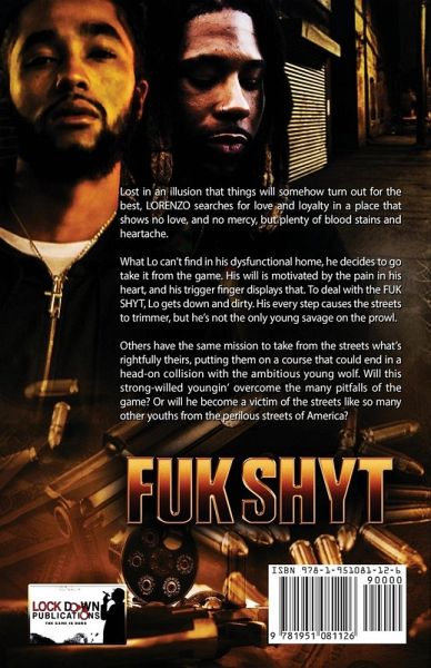 Lost in an illusion that things will somehow turn out for the best, LORENZO searches for love and loyalty in a place that shows no love, and no mercy, but plenty of blood stains and heartache.What Lo can’t find in his dysfunctional home, he decides to go take it from the game. His will is motivated by the pain in his heart, and his trigger finger displays that. To deal with the FUK SHYT, Lo gets down and dirty. His every step causes the streets to trimmer, but he’s not the only young savage on the prowl.Others have the same mission to take from the streets what’s rightfully theirs, putting them on a course that could end in a head-on collision with the ambitious young wolf. Will this strong-willed youngin’ overcome the many pitfalls of the game? Or will he become a victim of the streets like so many other youths from the perilous streets of America?