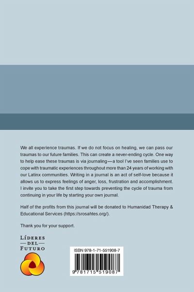 We all experience traumas. If we do not focus on healing, we can pass our traumas to our future families. This can create a never-ending cycle. One way to help ease these traumas is via journaling. Writing in a journal is an act of self-love because it allows us to express feelings of anger, loss, frustration and accomplishment. I invite you to take the first step towards preventing the cycle of trauma from continuing in your life by starting your own journal. Half of the profits from this journal will be donated to Humanidad Therapy and Educational Services. Thank you for your support.