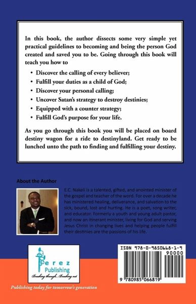 Finding meaning and purpose in our daily life is what many hearts yearn for. In Fulfilling Your Destiny, the author divulges little but very profound secrets that will launch you on the path to finding and fulfilling your destiny. In this book you will find practical steps on how to release the baby called destiny from the confines of the womb of passing time into the world of purposeful living, how to receive a vision, and how to accomplish your God-ordained purpose.