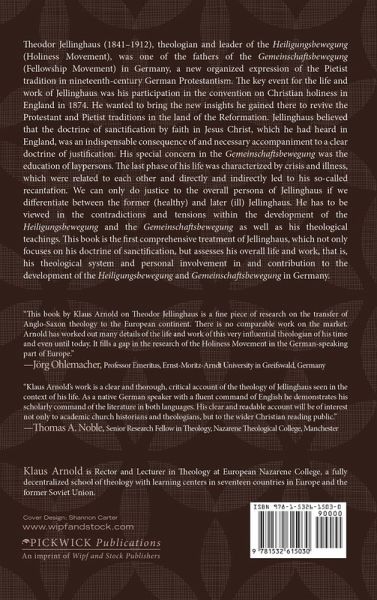 Theodor Jellinghaus (1841-1912), theologian and leader of the Heiligungsbewegung (Holiness Movement), was one of the fathers of the Gemeinschaftsbewegung (Fellowship Movement) in Germany, a new organized expression of the Pietist tradition in nineteenth-century German Protestantism. The key event for the life and work of Jellinghaus was his participation in the convention on Christian holiness in England in 1874. He wanted to bring the new insights he gained there to revive the Protestant and Pietist traditions in the land of the Reformation. Jellinghaus believed that the doctrine of sanctification by faith in Jesus Christ, which he had heard in England, was an indispensable consequence of and necessary accompaniment to a clear doctrine of justification. His special concern in the Gemeinschaftsbewegung was the education of laypersons. The last phase of his life was characterized by crisis and illness, which were related to each other and directly and indirectly led to his so-called recantation. We can only do justice to the overall persona of Jellinghaus if we differentiate between the former (healthy) and later (ill) Jellinghaus. He has to be viewed in the contradictions and tensions within the development of the Heiligungsbewegung and the Gemeinschaftsbewegung as well as his theological teachings. This book is the first comprehensive treatment of Jellinghaus, which not only focuses on his doctrine of sanctification, but assesses his overall life and work, that is, his theological system and personal involvement in and contribution to the development of the Heiligungsbewegung and Gemeinschaftsbewegung in Germany. ""This book by Klaus Arnold on Theodor Jellinghaus is a fine piece of research on the transfer of Anglo-Saxon theology to the European continent. There is no comparable work on the market. Arnold has worked out many details of the life and work of this very influential theologian of his time and even until today. It fills a gap in the research of the Holiness Movement in the German speaking part of Europe."" --Jorg Ohlemacher, Professor Emeritus, Ernst-Moritz-Arndt University in Greifswald, Germany ""Klaus Arnold's work is a clear and thorough, critical account of the theology of Jellinghaus seen in the context of his life. As a native German speaker with a fluent command of English he demonstrates his scholarly command of the literature in both languages. His clear and readable account will be of interest not only to academic church historians and theologians, but to the wider Christian reading public."" --Thomas A. Noble, Senior Research Fellow in Theology, Nazarene Theological College, Manchester Klaus Arnold is Rector and Lecturer in Theology at European Nazarene College, a fully decentralized school of theology with learning centers in seventeen countries in Europe and the former Soviet Union.