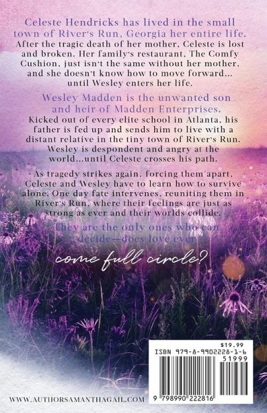 Celeste Hendricks has lived in the small town of River's Run, Georgia her entire life. After the tragic death of her mother, Celeste is lost and broken. Her family's restaurant, The Comfy Cushion, just isn't the same without her mother, and she doesn't know how to move forward...until Wesley enters her life. Wesley Madden is the unwanted son and heir of Madden Enterprises. Kicked out of every elite school in Atlanta, his father is fed up and sends him to live with a distant relative in the tiny town of River's Run. Wesley is despondent and angry at the world...until Celeste crosses his path. As tragedy strikes again, forcing them apart, Celeste and Wesley have to learn how to survive alone. One day fate intervenes, reuniting them in River's Run, where their feelings are just as strong as ever and their worlds collide. They are the only ones who can decide-does love ever come full circle?