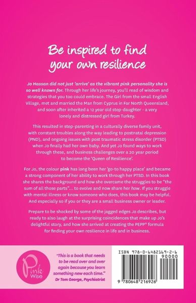 Be inspired to find your own resilience! Jo Hassan did not just 'arrive' as the vibrant pink personality she is so well known for. Through her life's journey, you'll read of wisdom and strategies that you too could embrace. The Girl from the small English Village, met and married the Man from Cyprus in Far North Queensland, and soon after inherited a 12 year old step-daughter - a very lonely and distressed girl from Turkey. This resulted in step-parenting in a culturally diverse family unit, with constant troubles along the way led to postnatal depression (PND), and ongoing issues with post traumatic stress disorder (PTSD) when Jo finally had her own baby. And yet Jo found ways to work through these, and business challenges over a 20 year period to become the 'Queen of Resilience'. For Jo, the colour pink has long been her 'go-to happy place' and became a strong component of her ability to work through her PTSD. In this book she shares the background and how she overcame the struggles to be "the sum of all those parts"… to evolve and now share her how. If you struggle with mental illness or know someone who does, this book may be helpful. And especially so if you or they are a small business owner or leader.