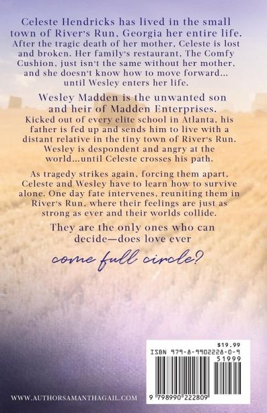 Celeste Hendricks has lived in the small town of River's Run, Georgia her entire life. After the tragic death of her mother, Celeste is lost and broken. Her family's restaurant, The Comfy Cushion, just isn't the same without her mother, and she doesn't know how to move forward...until Wesley enters her life. Wesley Madden is the unwanted son and heir of Madden Enterprises. Kicked out of every elite school in Atlanta, his father is fed up and sends him to live with a distant relative in the tiny town of River's Run. Wesley is despondent and angry at the world...until Celeste crosses his path. As tragedy strikes again, forcing them apart, Celeste and Wesley have to learn how to survive alone. One day fate intervenes, reuniting them in River's Run, where their feelings are just as strong as ever and their worlds collide. They are the only ones who can decide-does love ever come full circle?
