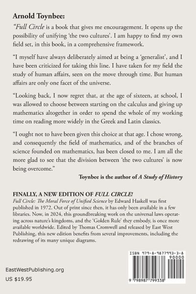 Full Circle: The Moral Force of Unified Science is the work of a group of scientists, led by Edward Haskell, who developed a theory of everything that reveals a moral orientation throughout nature. A primary inspiration for this group was the work of Mendeleev, who identified common characteristics among chemical elements that enabled the creation of the Periodic Table of Chemical elements, which orders the elements into groups and periods. Full Circle extrapolates this ordering to apply to all of the seven kingdoms of nature, abiotic, biotic and human. Two of Haskell's main collaborators (who graduated with him from Oberlin before going on to careers in academia), were Willard Quine, a mathematician and philosopher at Harvard, and Harold Cassidy, a chemist and author of science textbooks at Yale. The first edition of this book was published in 1972 on the occasion of the convening of a conference in New York under the title: The International Conference on Unified Science, which was organized by Haskell. ICUS (albeit with the name slightly modified to read: International Conference on the Unity of the Sciences) would develop into a major international gathering attracting Nobel laureates and other distinguished men and women of science in a series of 20 conferences. Full Circle, however, would be the only book on Unified Science authored or edited by Haskell, who passed away in 1990. It has been out of print since 1972 and only now, in 2024, has it been edited and republished by Thomas Cromwell, a one-time student of Haskell.