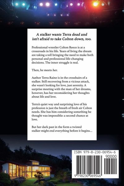 Professional wrestler Colton Reece is at a crossroads in his life. Years of living the dream are taking a toll bringing the need to make both personal and professional life-changing decisions. The inner struggle is real. Then, he meets her. Author Terra Raine is in the crosshairs of a stalker. Still recovering from a vicious attack, she wasn't looking for love, just serenity. A surprise meeting with the man of her dreams, however, has her reconsidering her thoughts about life and love. Terra's quiet way and surprising love of his profession is just the breath of fresh air Colton needs. She has him considering something he thought was impossible: A second chance at love. But her dark past in the form a twisted stalker might end everything before it begins...A stalker that wants Terra dead and isn't afraid to take Colton down, too. Colton and Terra begin to explore a chance at love and life together, but will they survive an unknown danger that stalks their very lives?