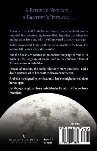 A Father’s Neglect… A Brother’s Betrayal… Answers…that’s all Arabella ever wanted. Answers about how to vanquish the recurring nightmares that plague her…or where her mother came from and why she disappeared so many years ago. To fifteen-year-old Arabella, the answers must lie in the books her mother left behind when she vanished. But the books are written in an ancient language shrouded in mystery—the language of magic. And in the conquered land of Atruria, magic is forbidden. Instead of answers, the books offer only more questions—and a death sentence when her brother discovers her secret.…mehr