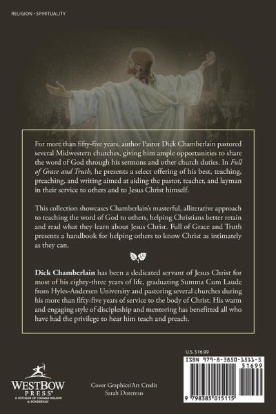 For more than fifty-five years, author Pastor Dick Chamberlain pastored several Midwestern churches, giving him ample opportunities to share the word of God through his sermons and other church duties. In Full of Grace and Truth, he presents a select offering of his best, teaching, preaching, and writing aimed at aiding the pastor, teacher, and layman in their service to others and to Jesus Christ himself. This collection showcases Chamberlain¿s masterful, alliterative approach to teaching the word of God to others, helping Christians better retain and read what they learn about Jesus Christ. Full of Grace and Truth presents a handbook for helping others to know Christ as intimately as they can.