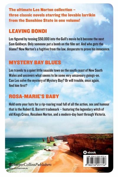 A collection of three of Bob Barrett's Les Norton stories. LEAVING BONDI - Les figured by tossing $50,000 into the Gull's movie he'd become the next Sam Goldwyn. Only someone put a bomb on the film set. And who gets the blame? Now Norton's a fugitive from the law, and desperate to prove his innocence. Satanists, drug dealers, nutty poets, blabbermouth disc jockeys - everybody between Sydney, the Blue Mountains and South Australia wants a piece of Les Norton. So what are Norton's chances of clearing his name and coming up smelling of roses? VFO. But rely on Les to come up smelling of something. MYStERY BAY BLUES - Les travels to a quiet little seaside town on the south coast of New South Wales and uncovers what seems to be some very unsavoury goings-on. Can Les solve the mystery of Mystery Bay? Or will trouble, once again, find him first? ROSA MARIE'S BABY - Hold onto your hats for a rip-roaring read full of all the action, sex and humour that is the Robert G. Barrett trademark.