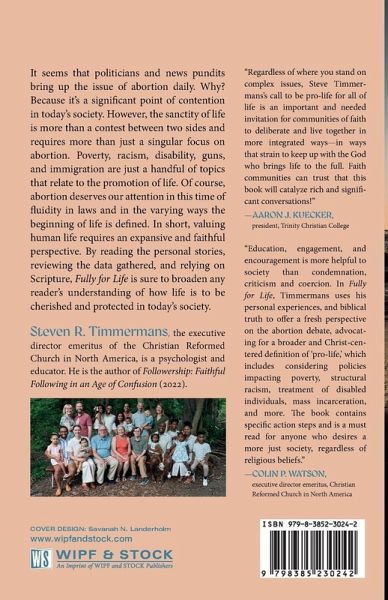 It seems that politicians and news pundits bring up the issue of abortion daily. Why? Because it's a significant point of contention in today's society. However, the sanctity of life is more than a contest between two sides and requires more than just a singular focus on abortion. Poverty, racism, disability, guns, and immigration are just a handful of topics that relate to the promotion of life. Of course, abortion deserves our attention in this time of fluidity in laws and in the varying ways the beginning of life is defined. In short, valuing human life requires an expansive and faithful perspective. By reading the personal stories, reviewing the data gathered, and relying on Scripture, Fully for Life is sure to broaden any reader's understanding of how life is to be cherished and protected in today's society.