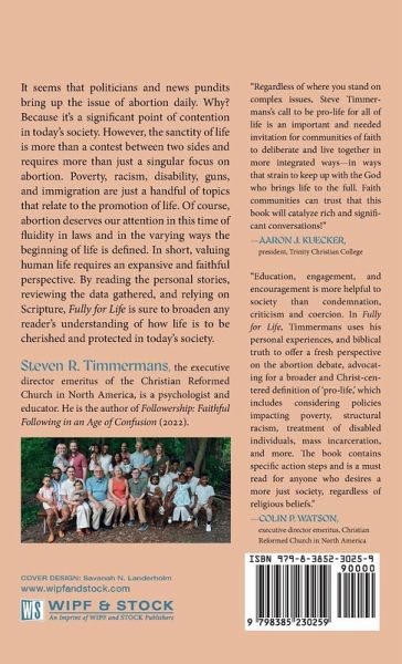 It seems that politicians and news pundits bring up the issue of abortion daily. Why? Because it's a significant point of contention in today's society. However, the sanctity of life is more than a contest between two sides and requires more than just a singular focus on abortion. Poverty, racism, disability, guns, and immigration are just a handful of topics that relate to the promotion of life. Of course, abortion deserves our attention in this time of fluidity in laws and in the varying ways the beginning of life is defined. In short, valuing human life requires an expansive and faithful perspective. By reading the personal stories, reviewing the data gathered, and relying on Scripture, Fully for Life is sure to broaden any reader's understanding of how life is to be cherished and protected in today's society.