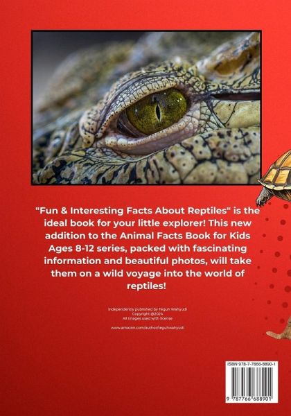 Are you curious about reptile facts? "Fun & Interesting Facts About Reptiles" is the ideal book for your little explorer! This new addition to the Animal Facts Book for Kids ages 8-12 series, packed with fascinating information and beautiful photos, will take them on a wild voyage into the world of reptiles! Inside, they will find: * Slithering Secrets: Discover how snakes shed their skin! * Turtle Power: Explore the fascinating world of turtles and tortoises, from their super-strong shells to their astounding lifespans! * Crocodile Chronicles: Learn intriguing facts about these toothy reptiles, including their formidable jaws and ancient past! And that is not all! This book is jam-packed with fun facts, colorful illustrations, and astounding information to keep your child entertained and learning. "Fun & Interesting Facts About Reptiles" will turn your child into a reptile expert in no time! Get your copy now and watch their fascination grow!